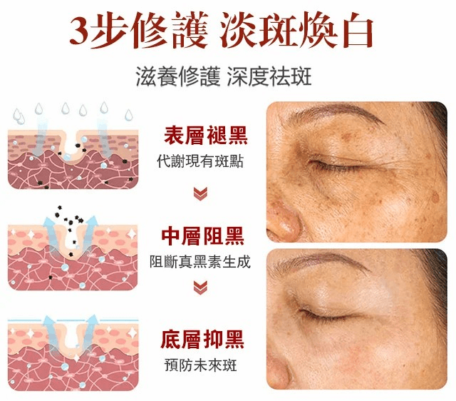 適用人群:雀斑,黃褐斑,老年斑,色素沈著,咖啡斑等